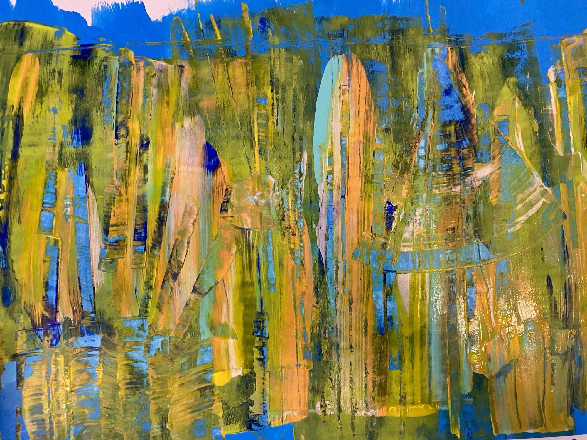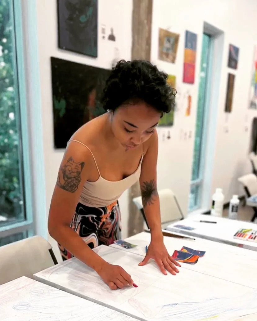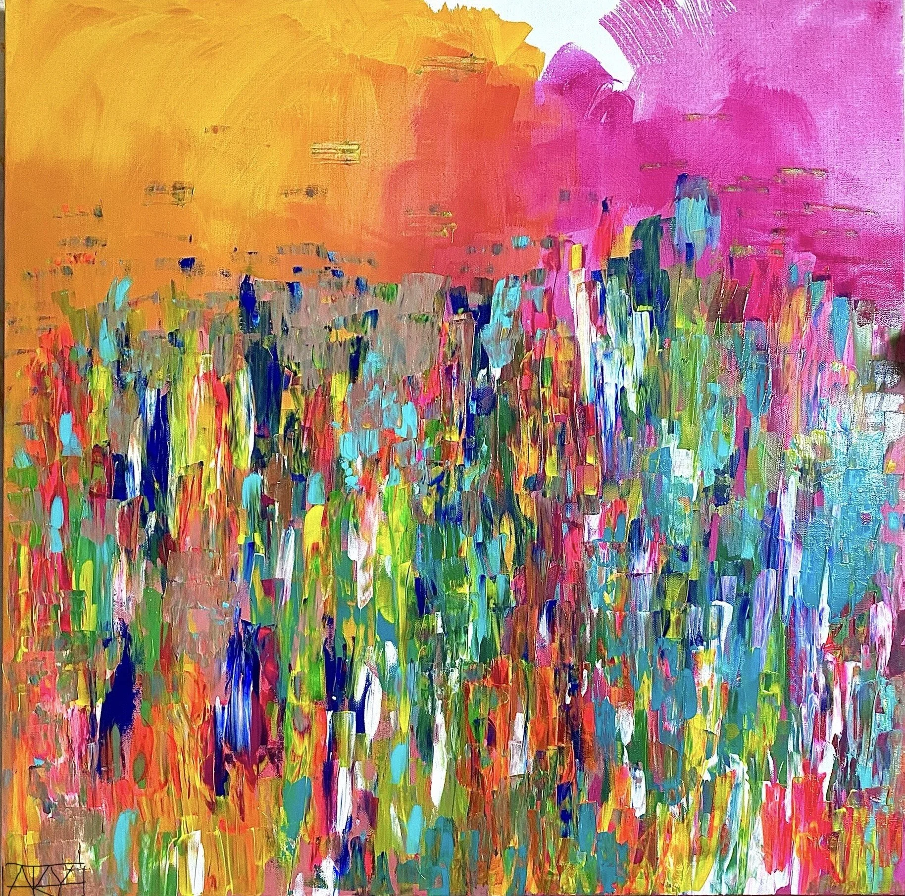 “My work is born from the energy of experiences that words cannot fully capture. Drawing from the depths of childhood and relationship trauma, I paint to release, process, and translate emotions into something tangible. My practice is intuitive; I don’t plan my pieces. Instead, I let each day’s feelings guide my hand, choosing colors, shapes, patterns, and strokes that resonate with me in the moment.